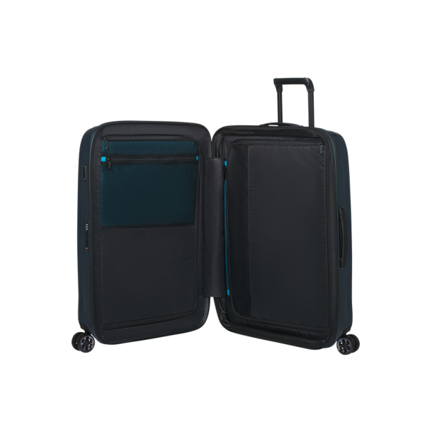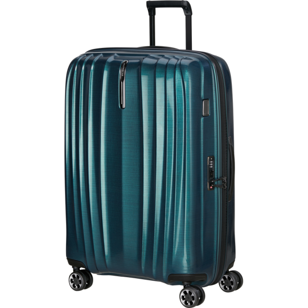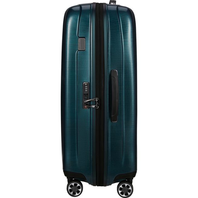 The Nexis collection's large-sized spinner in Deep Petrol showcases premium luggage engineering. This 76cm case (76 x 52 x 29/32cm expanded) utilises breakthrough ROXKIN™ polypropylene construction, delivering exceptional impact resistance whilst maintaining a manageable 3.5kg weight. The sophisticated Deep Petrol colourway provides refined elegance perfect for upscale travel environments and extended luxury journeys.